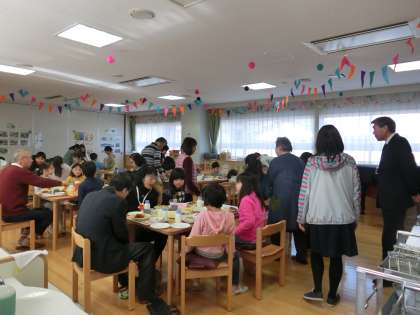 今日は2年生がふれあい給食会をひらき、おじいちゃまやおばあちゃまと