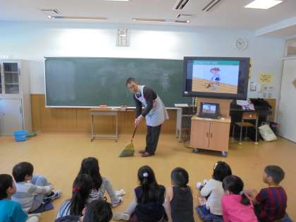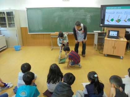 1/29(月)、全学年が「ダスキン出前授業」を活用し、掃除について学習しました。