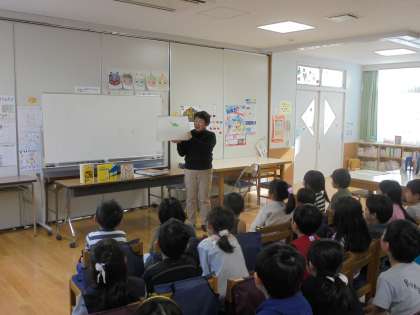 2/5(月)、1〜3年生が「ぶっく・らぼ」による本の読み聞かせの授業を受けました。