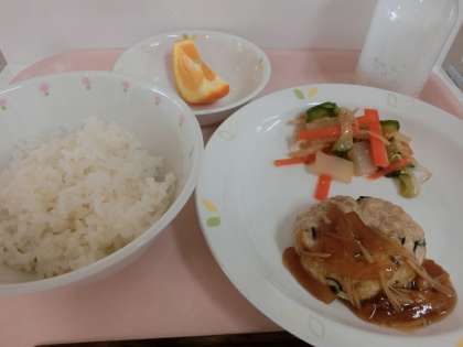 献立 ごはん 豆腐ハンバーグ こんにゃくサラダ