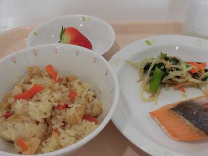 献立 こぎつねごはん 鮭の塩焼き おひたし