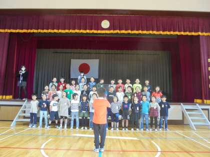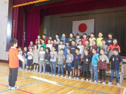 1年生の発表後、全員で今月の歌「絆」を歌いました。