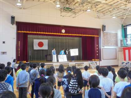 3/15(木)、音楽集会で1年生が「はじめまして」の合唱を発表しました。