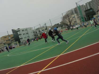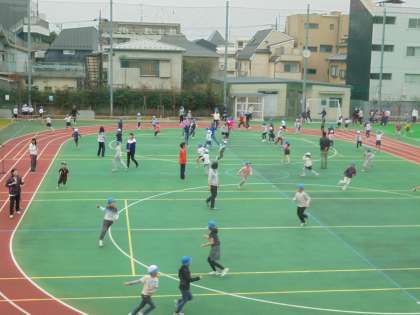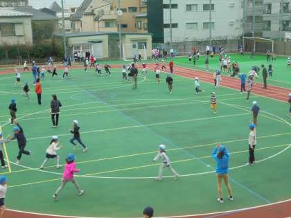 全員で「バナナおに」を行いました。1回戦は1年生、2回戦は6年生、3回戦は先生たちがおにになりました。