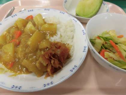 最後の給食でした。最後の献立は、みんな大好きカレ