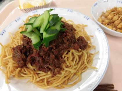 今日は人気の献立の一つ、ジャージャー麺。