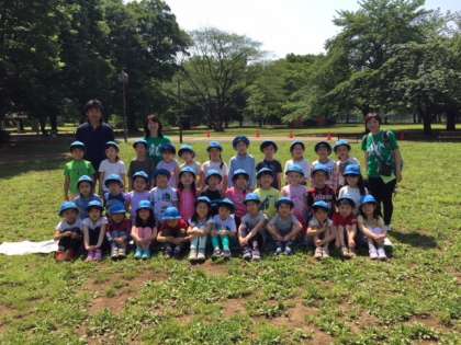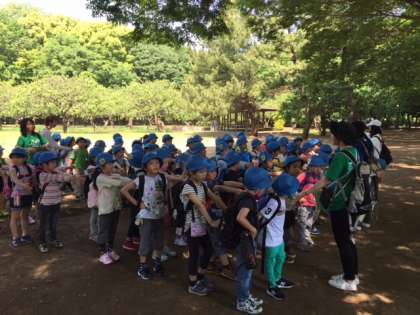 5/1(火)、1・2年生が遠足で砧公園へ行きました。到着後、クラスごとに写真撮影を行いました。今は1・2年生合同でオリエンテーリングを行っています。