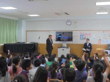世田谷警察署の警察官の方から、高学年はインターネットトラブルも含めた犯罪被害防止、低学年は連れ去り防止についてのお話をいただきました。