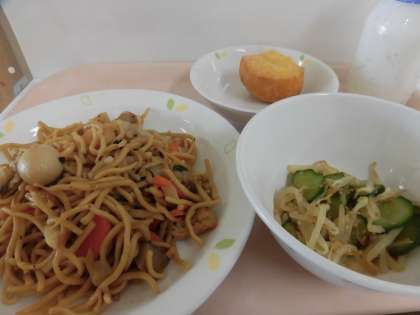 献立 五目やきそば もやしときゅうりの胡麻和え