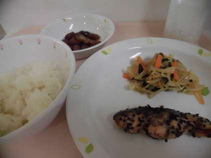 献立 ごはん 鮭の南部焼き 野菜のからし醤油