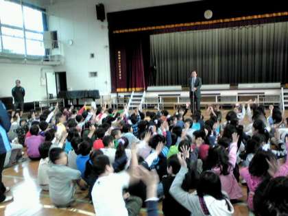 今日の児童朝会は、校長先生から交響曲「新世界から」を題材にお話がありました。交響曲「新世界から」では、たった一カ所シンバルが叩かれる場所があります。たった一カ所ですが、交響曲全体の中でなくてはならない演奏です。