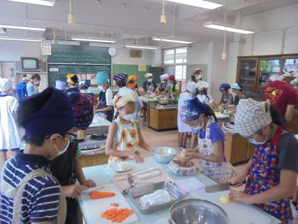6/13(水)、5年生が川場移動教室に向け、カレーづくりに取り組みました。