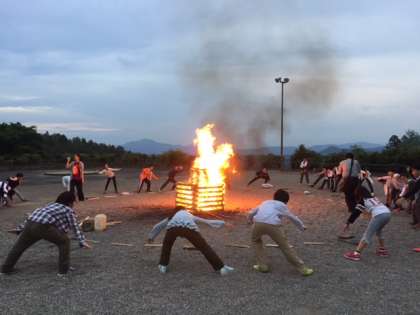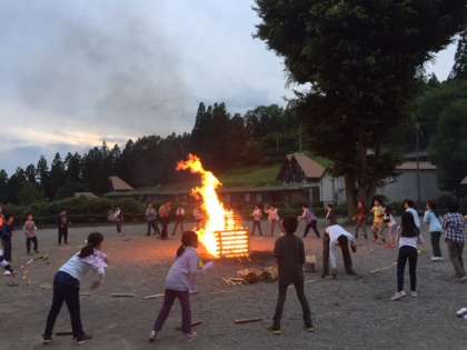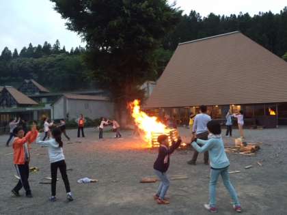 雨乞山登山、マスつかみと盛りだくさんだった2日目の最後はキャンプファイヤー。