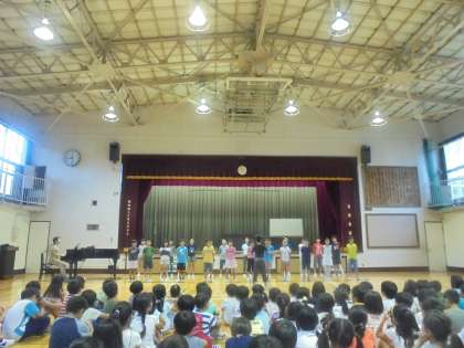 5年生の発表後、全員で今月の歌「Tomorrow」をきれいな歌声で歌いました。