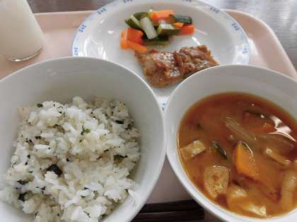 献立 わかめごはん 鶏肉の照り焼き ピクルス