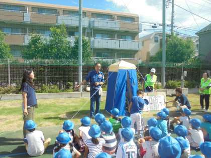 9/8(土)、「中里防災の日」を避難所運営委員会、世田谷消防署・消防団、太子堂まちづくりセンター、日本大学等様々な地域の方のご協力で避難所体験を行いました。