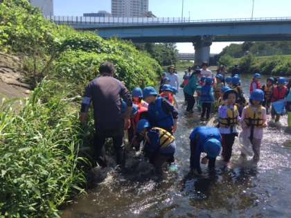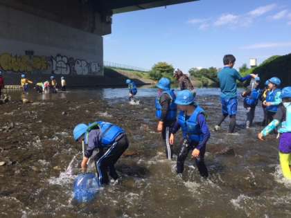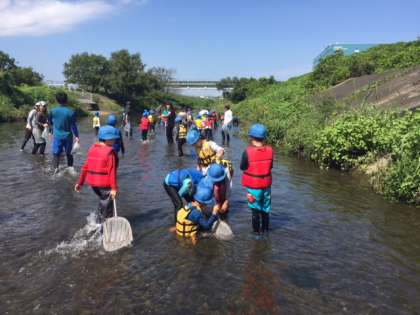 川エビやオイカワ、ズガニなどたくさんの生き物を見つけ、観察することができました。