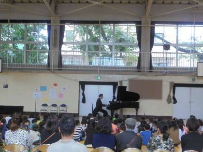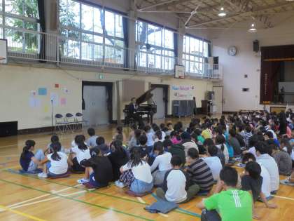 生の演奏をいつもの体育館で聴き、音楽の美しさにふれることができました。