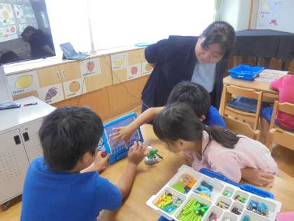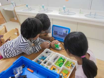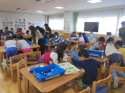 レゴのプログラミング用教材を用いて、扇風機を作り、プログラミングで動かす体験を行いました。