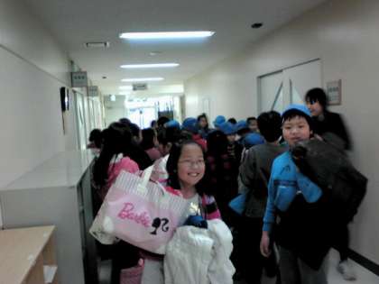 始業式のあといよいよ新しい校舎に入る子ども達。どの子も目を輝かせ新しい校舎での生活に胸をときめかせていました。