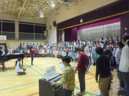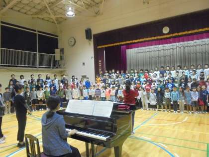 11/12(月)、「中里スクールアーツフェスタ〜学芸会〜」に向けて、「キッズウェーブ」と全校合唱「ことば」の練習を全学年で行いました。