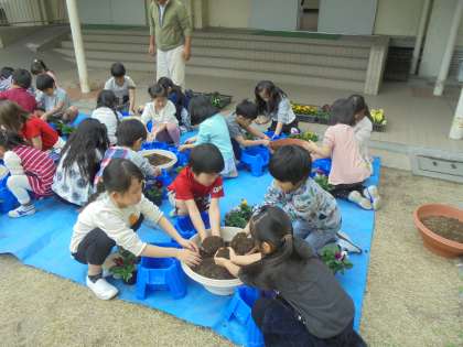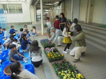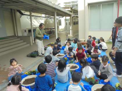 11/26(月)、1年生が「世田谷ファーム」の井出さんを講師にお招きし、パンジーの植え付けを行いました。