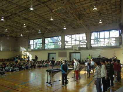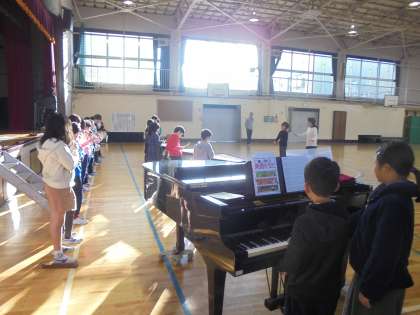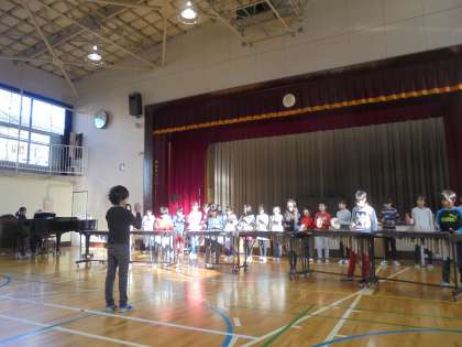 12/21(金)、音楽集会で4年生が「チキチキ バンバン」の合唱・合奏を行いました。その後、全員で「Santa Claus Is Coming To Town」を歌いました。すてきな歌声で楽しい気持ちになりました。