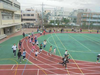 2/8までの中休みに3分間、全員で校庭を走ります。