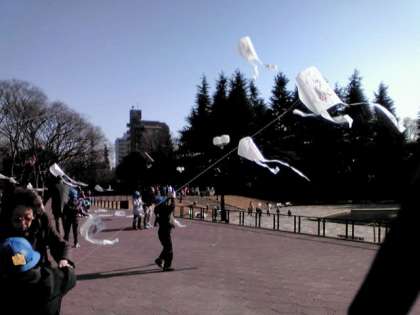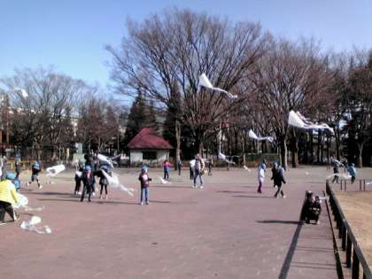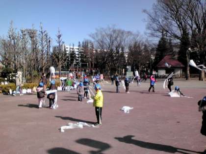 1・2年生が図工の時間に作ったたこを世田谷公園で上げるたこ上げ大会をしました。