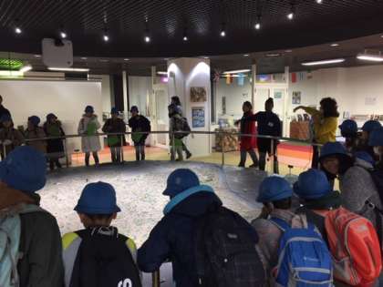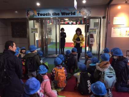 2/5(火)、4年生がセンター移動教室です。教育センターに到着し、Touch the Worldで英語の学習をしています。