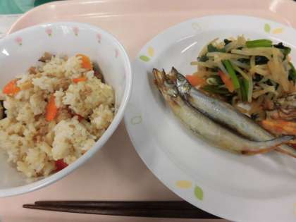 豚肉を使った炊き込みごはんを献立にしました。豚