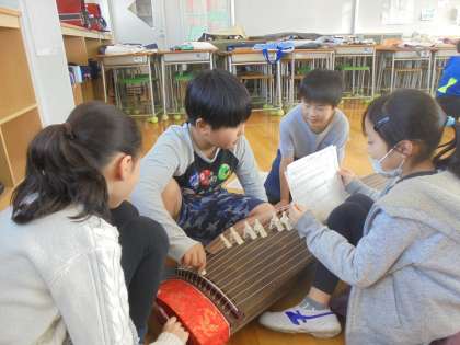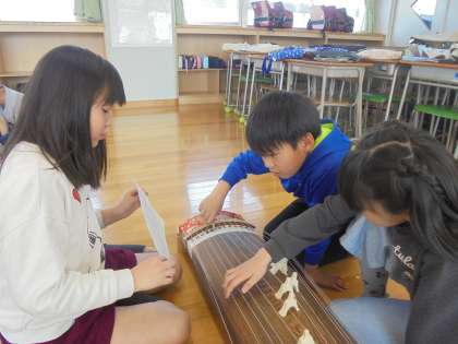 3/12(火)、3年生が音楽の時間に、琴で「さくら さくら」を演奏しました。