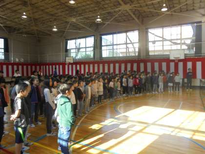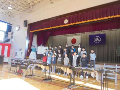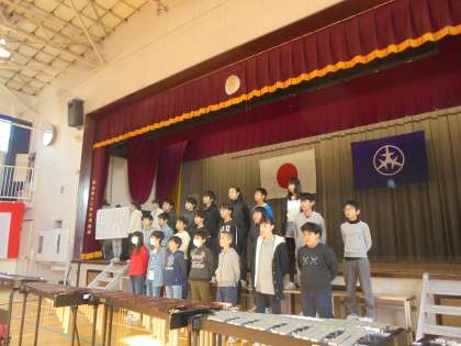 1年生の発表後、6年生と一緒に「旅立ちの日に」を全員で合唱しました。