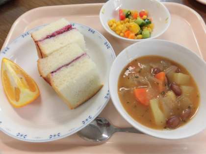 献立 ジャムサンド(ブルーベリー) ビーンズシチュー
