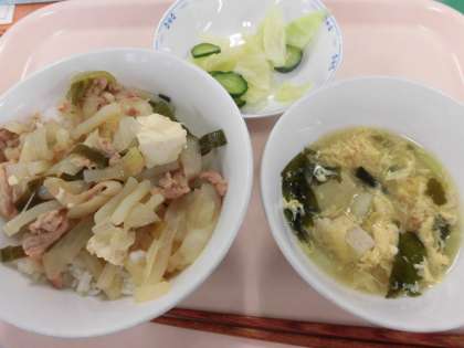 献立 豚丼 卵とわかめのスープ