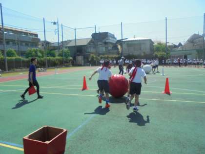 今日は、入場、大玉送り、閉会式の練習を行いました。