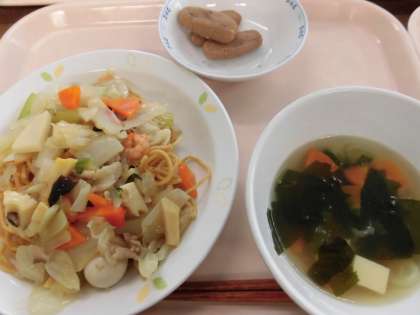 献立 五目あんかけそば わかめスープ