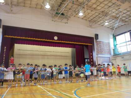 6/26(水)、音楽集会で3年生が「海風きって」の合唱と合奏を行いました。