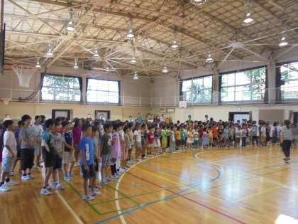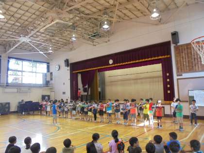 3年生の発表後、全員で今月の歌「あいさつは魔法の力」を大きな声で歌いました。