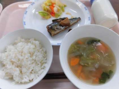 献立 麦ごはん さんまの松前煮