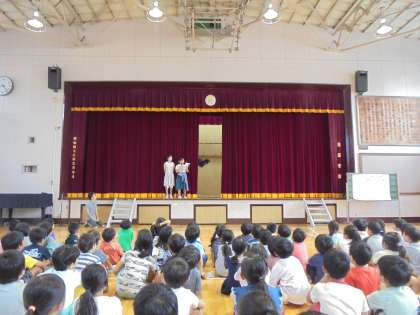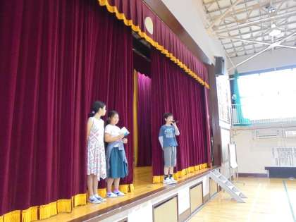 7/3(水)、児童集会で「今とおったものはなんでしょうゲーム」を行いました。