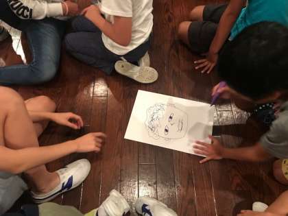 ナイトレクです。ジェスチャーゲームや似顔絵リレーなどのゲームをしています。盛り上がっています!