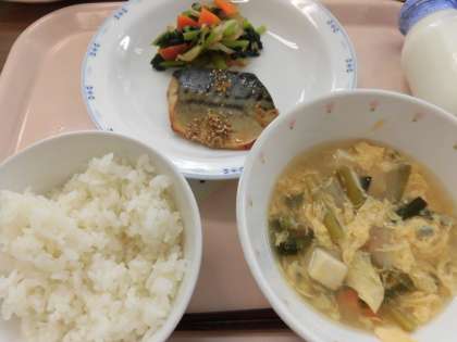 献立 ごはん 鯖の七味焼き 青菜のおひたし