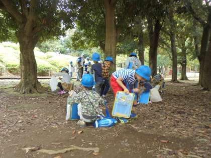 10/21(月)、1年生が生活科の学習として、世田谷公園で「秋さがし」を行ってきました。黄色や赤色の葉っぱ、どんぐりといった探した「秋」を持ち帰りました。