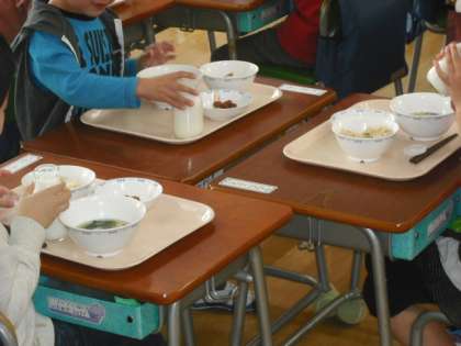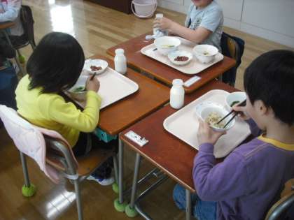 入学して初めての給食です。給食当番も待っている人も上手にできました。お味はいかがでしたか?