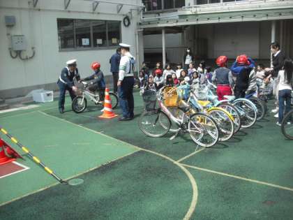 25日(月)2校時に3,4年生、3校時に5,6年生の交通安全教室が行われました。警察の方、PTAの方の指導を受けながら、自転車の安全な乗り方を勉強しました。誰もが、交通事故にあわないことを心より願っています。