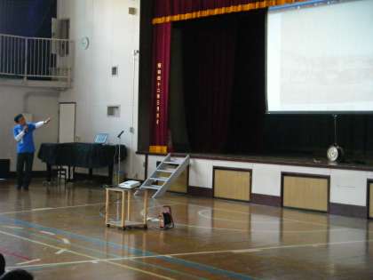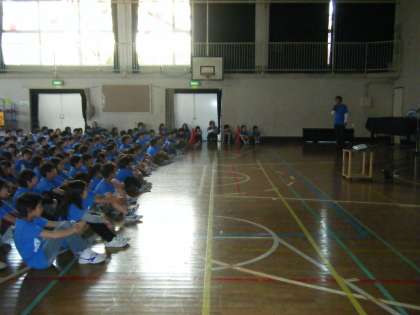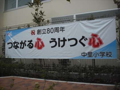 今日4月27日は、中里小学校の開校記念日です。朝の時間を利用して、校長の話、児童会の運営委員会委員長の話がありました。また、本日、正門わきに,80周年記念の横断幕を設置しました。