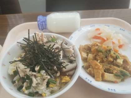 今日は人気の鶏飯の献立です。鹿児島の郷土料理として親しまれて