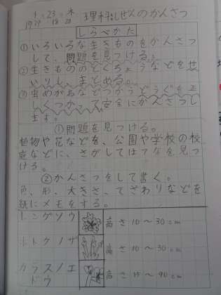 観察をして、心が動いたことを書くのも、理科と国語と図工の勉強になりますね。
