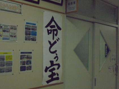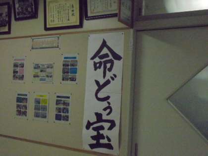 校長室の入り口には、筆で書いた作品が飾ってあります。さて、何と読むのでしょう。また、その意味も考えてみましょう。習字は校長先生の直筆です。